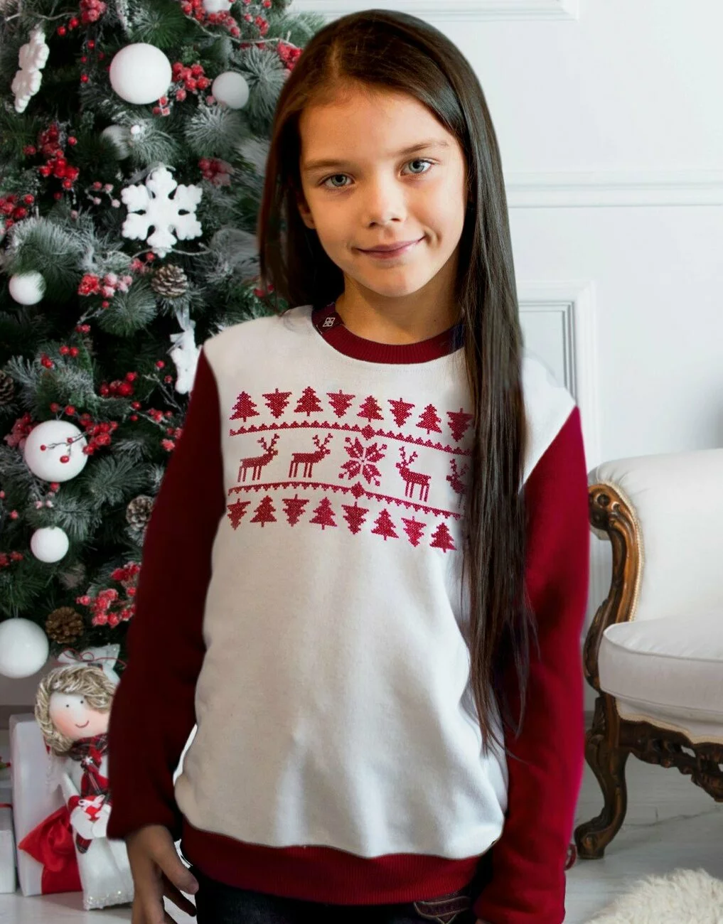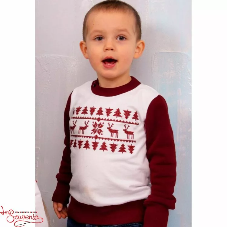 Дитячий стильний теплий світшот із яскравим зображенням на білому тлі із бордовими рукавами від гуртівні Leosouvenir чудово зігріє Вашу дитину у холодну погоду.
