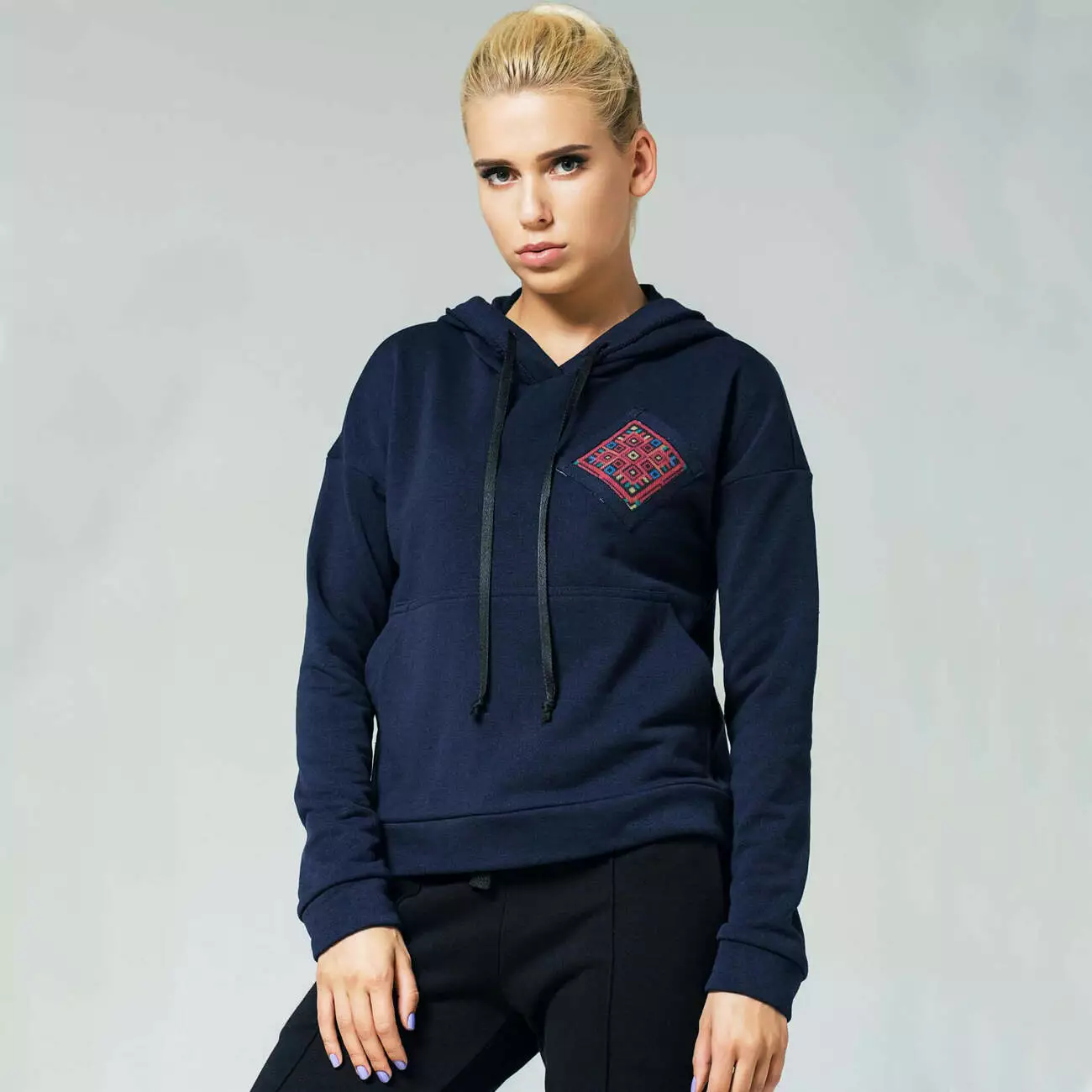 Молодіжний стильний жіночий світшот темно-синього кольору із оригінальним принтом у вигляді ромба від гуртівні Leosouvenir чудово підкреслить Ваш неперевершений стиль і смак.