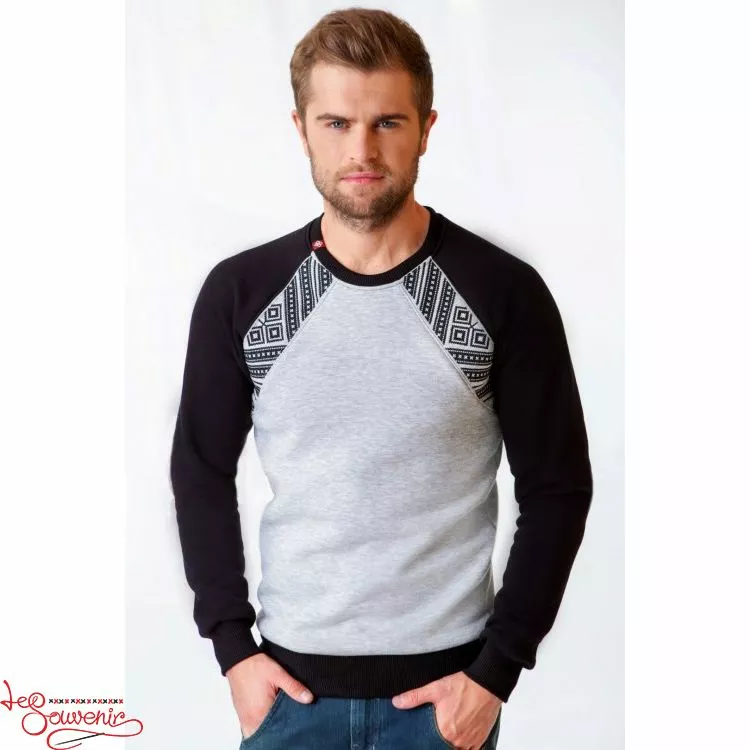 Чоловічий стильний теплий світшот із класичним українським вишитим візерунком від гуртівні Leosouvenir чудово зігріє Вас у холодну погоду.