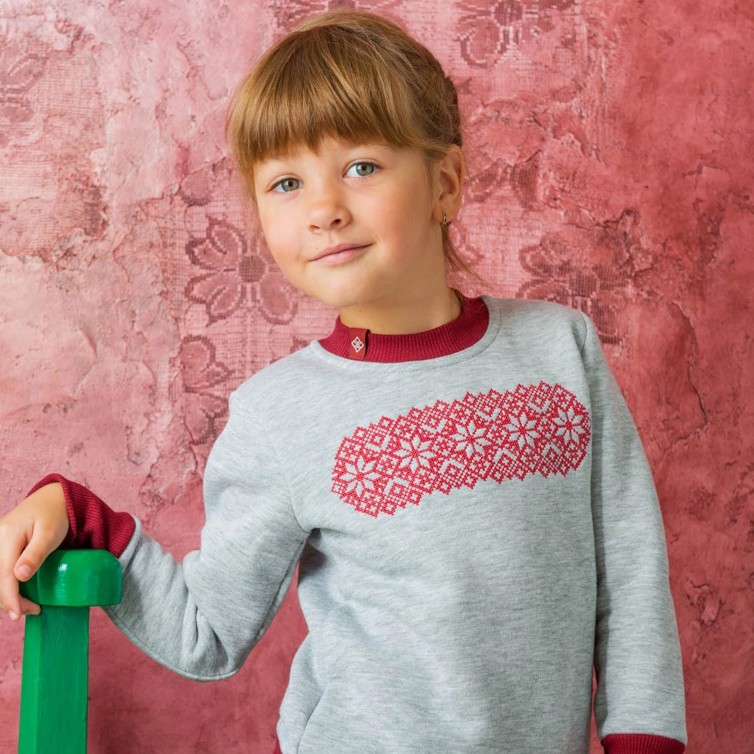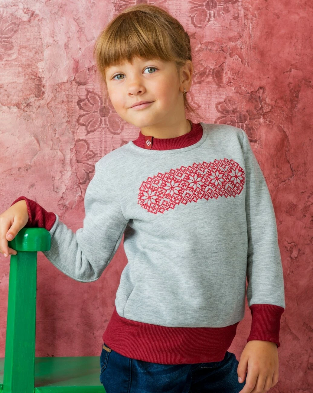 Дитячий стильний теплий світшот із оригінальною вишивкою на сірому тлі від гуртівні Leosouvenir чудово зігріє Вашу дитину у холодну погоду.