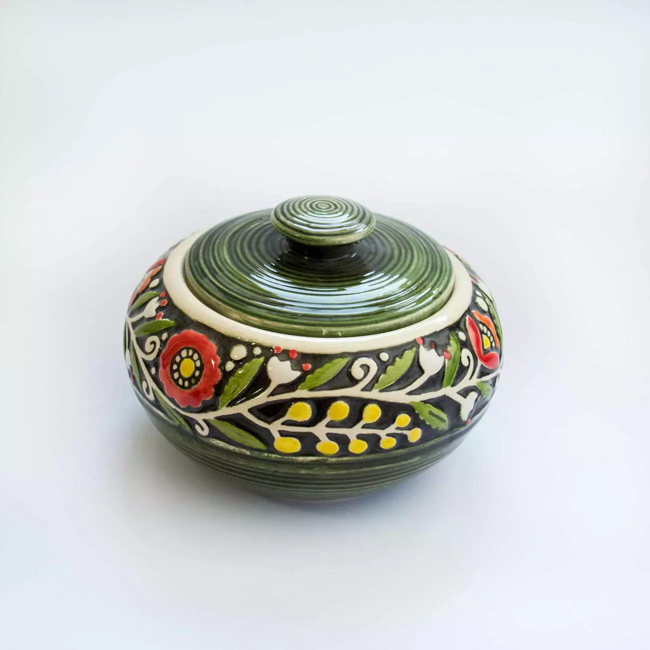 Цукерниця керамічна зелена ручної роботи від гуртівні Leosouvenir чудово пасуватиме до Вашого столу.