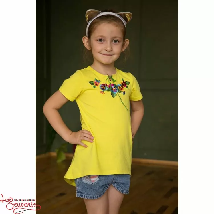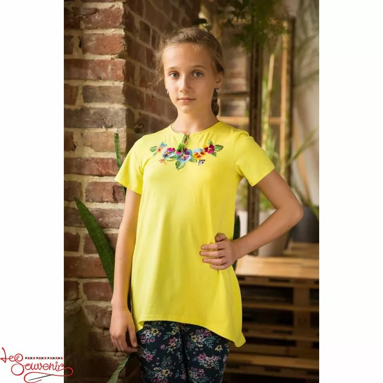 Вишита туніка із яскравою вишивкою гладдю на жовтому тлі від гуртівні Leosouvenir чудово пасуватие Вашій юній Україночці.