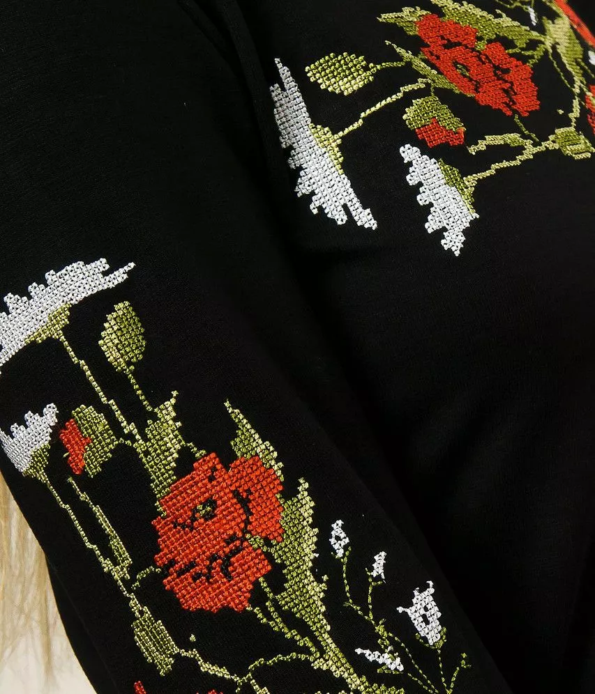 Жіноча туніка оздоблена яскравою вишивкою на чорному тлі від гуртівні Leosouvenir чудово підкреслить Ваш неперевершений смак і стиль.