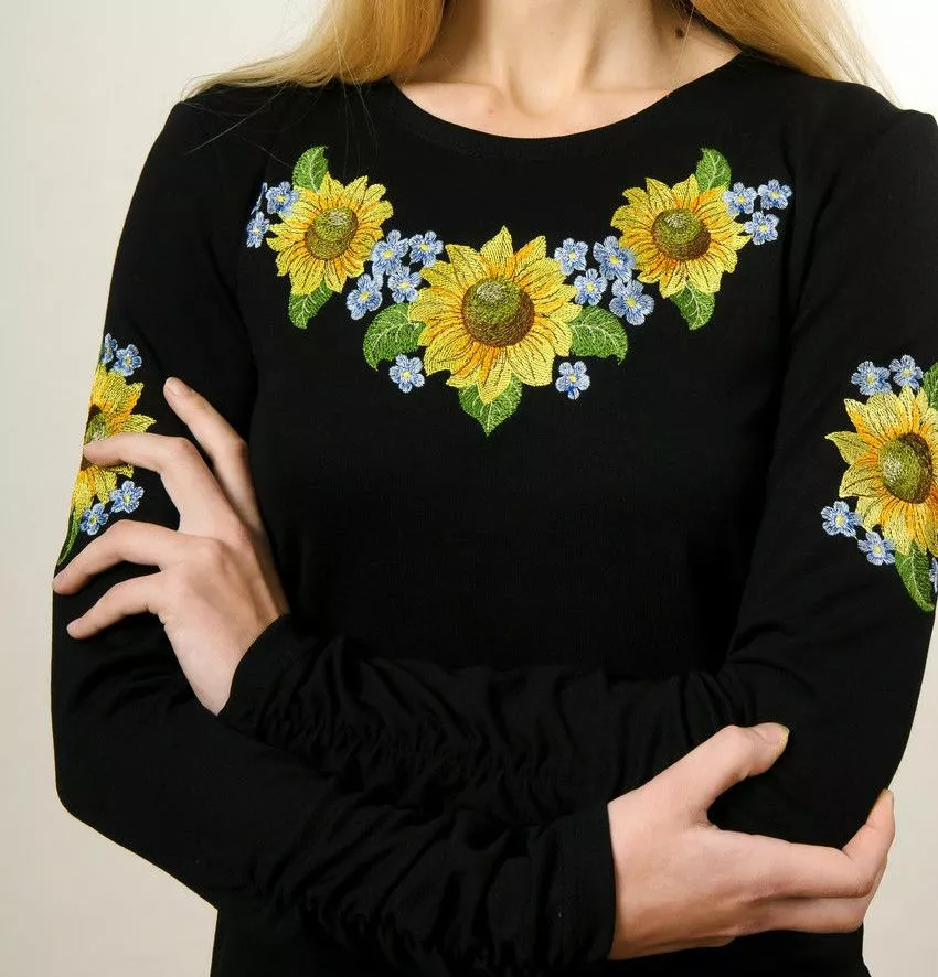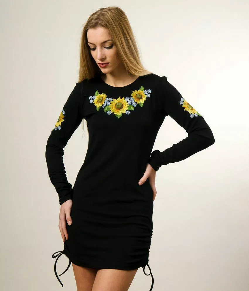 Жіноча туніка оздоблена яскравою вишивкою гладдю на чорному тлі від гуртівні Leosouvenir чудово підкреслить Ваш неперевершений смак і стиль.