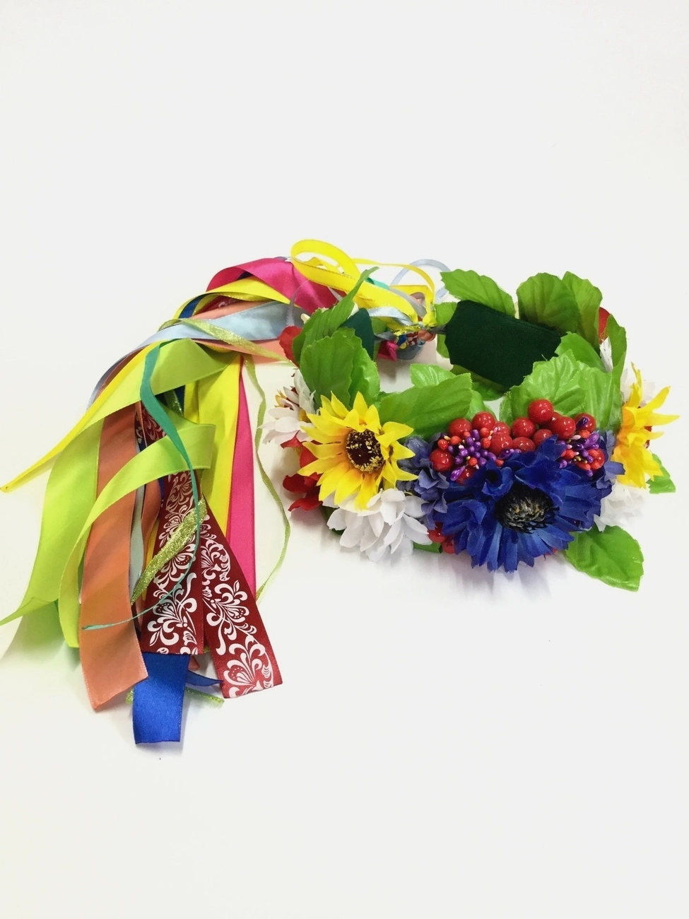 Квіти: соняшник, волошка, мак, ромашка, калина, дубове листя