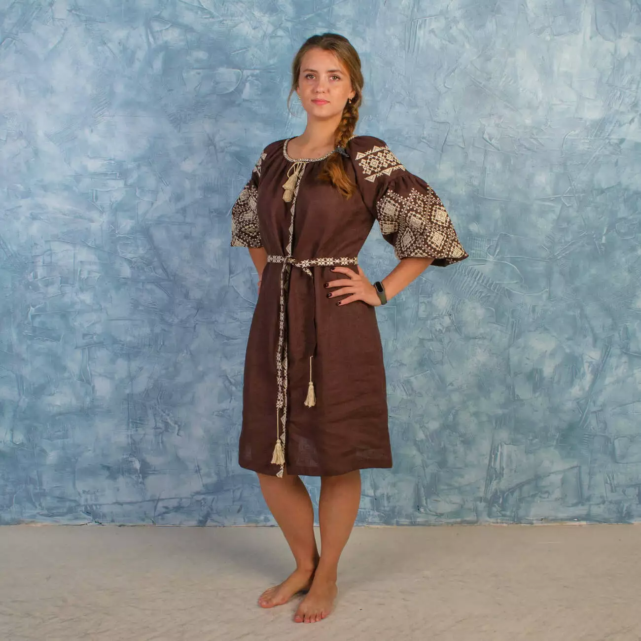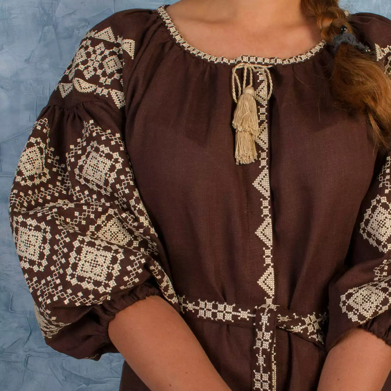 Модель: Вишита сукня Іванна коричнева.