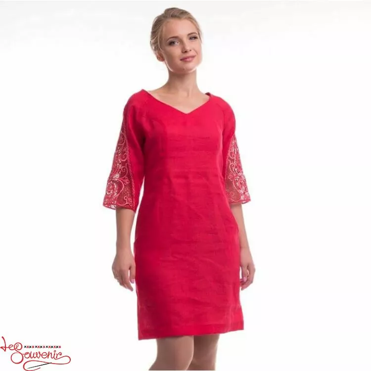 Жіноча сукня з мереживом, чудово виконана на делікатній тканині із оригінальним орнаментом на рукавах, від гуртівні Leosouvenir чудово підкреслить Ваш неперевершений смак і стиль.