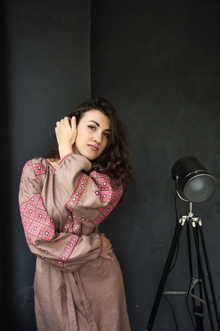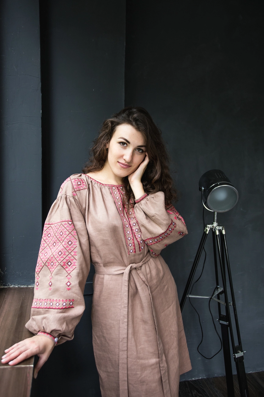 Жіноча сукня з пояском, чудово виконана на делікатній тканині із оригінальним візерунком на рукавах, від гуртівні Leosouvenir чудово підкреслить Ваш неперевершений смак і стиль.