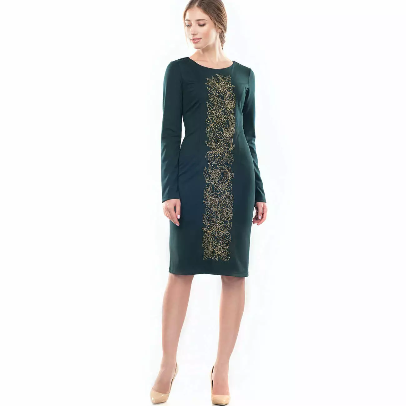 Жіноча сукня, чудово виконана на делікатній смарагдовій тканині із оригінальним яскравим орнаментом, від гуртівні Leosouvenir чудово підкреслить Ваш неперевершений смак і стиль.