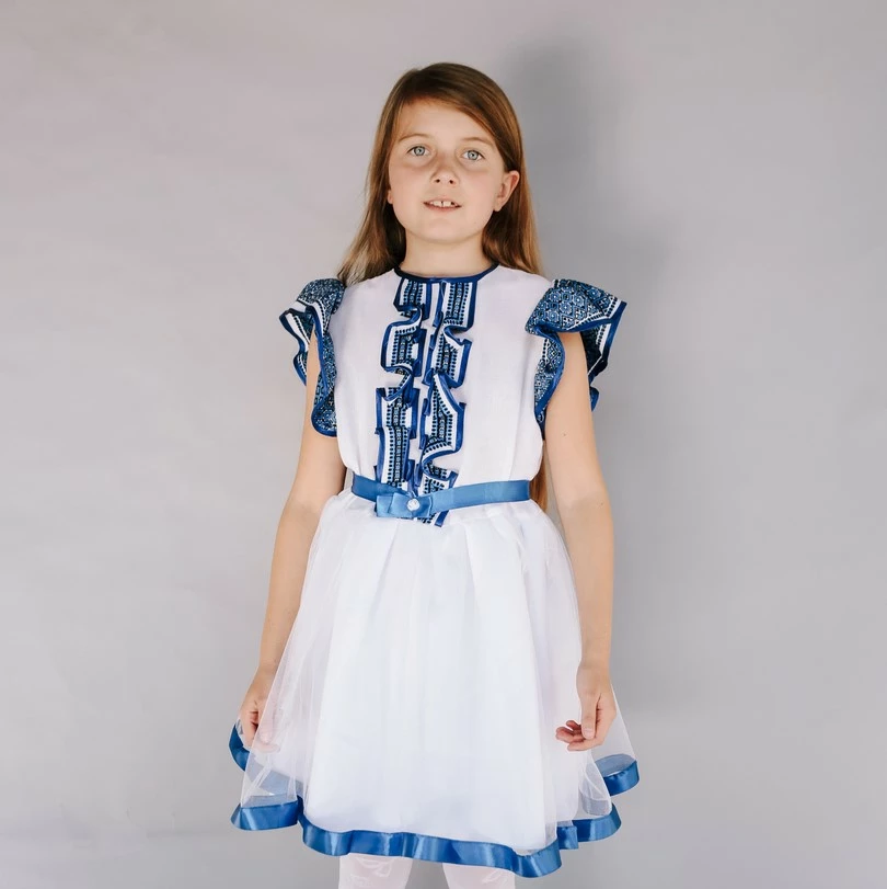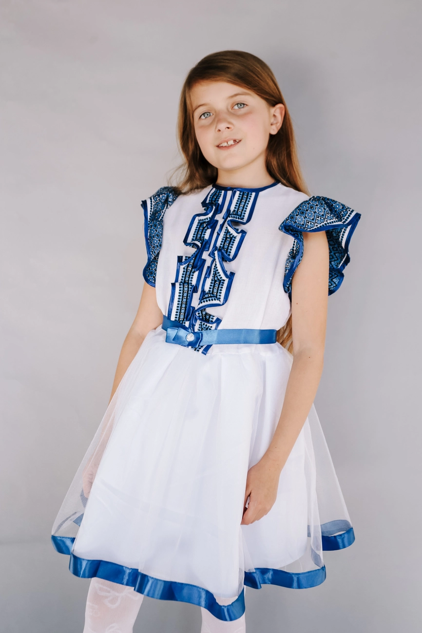 Дитяча вишита сукня яскраво-синього кольору з пояском від гуртівні Leosouvenir створить неперевершений вигляд Вашої дитини.