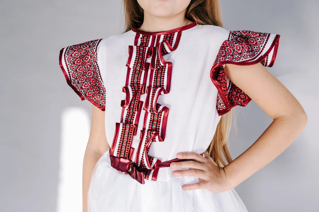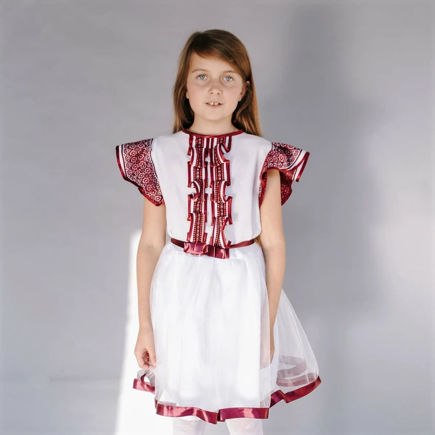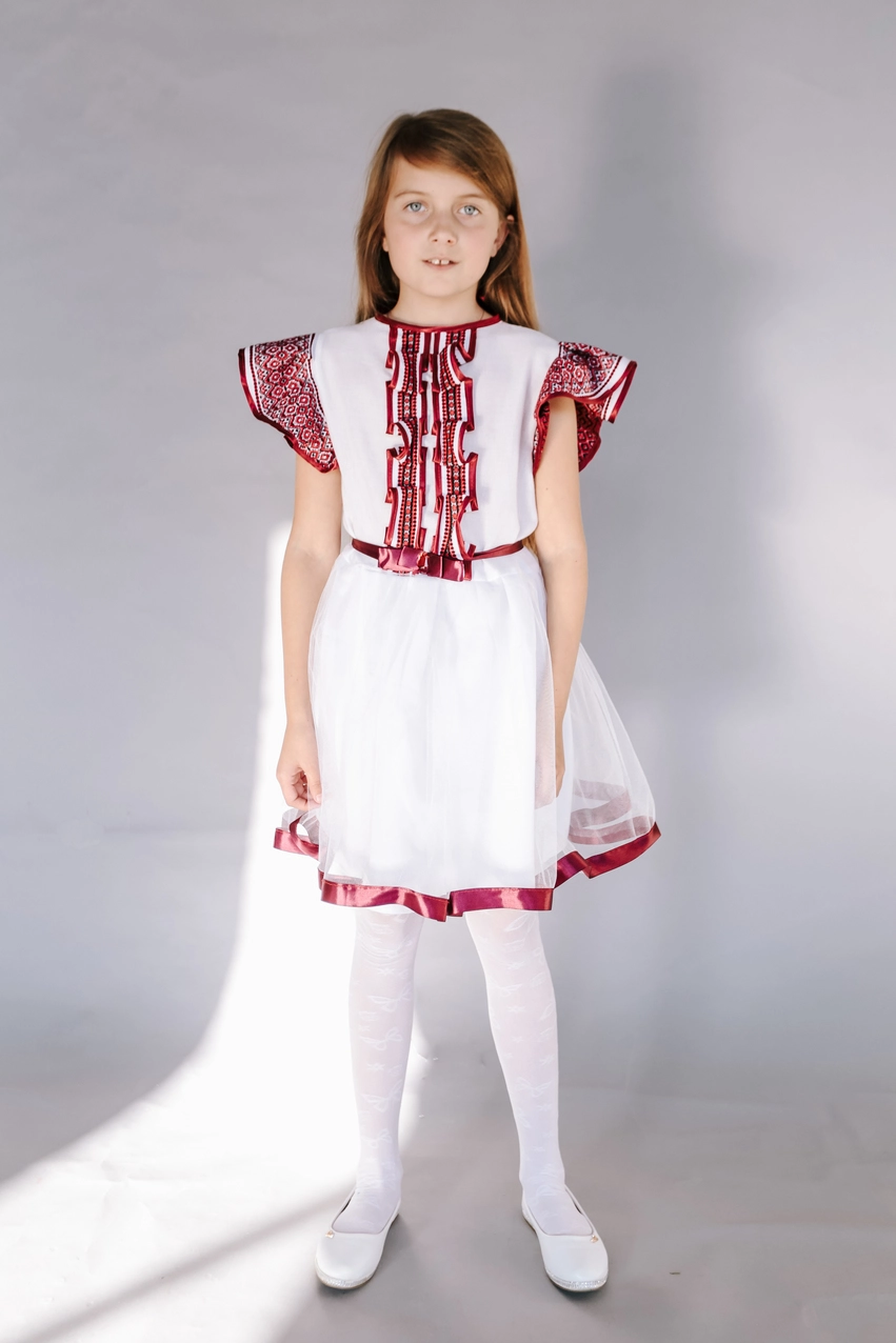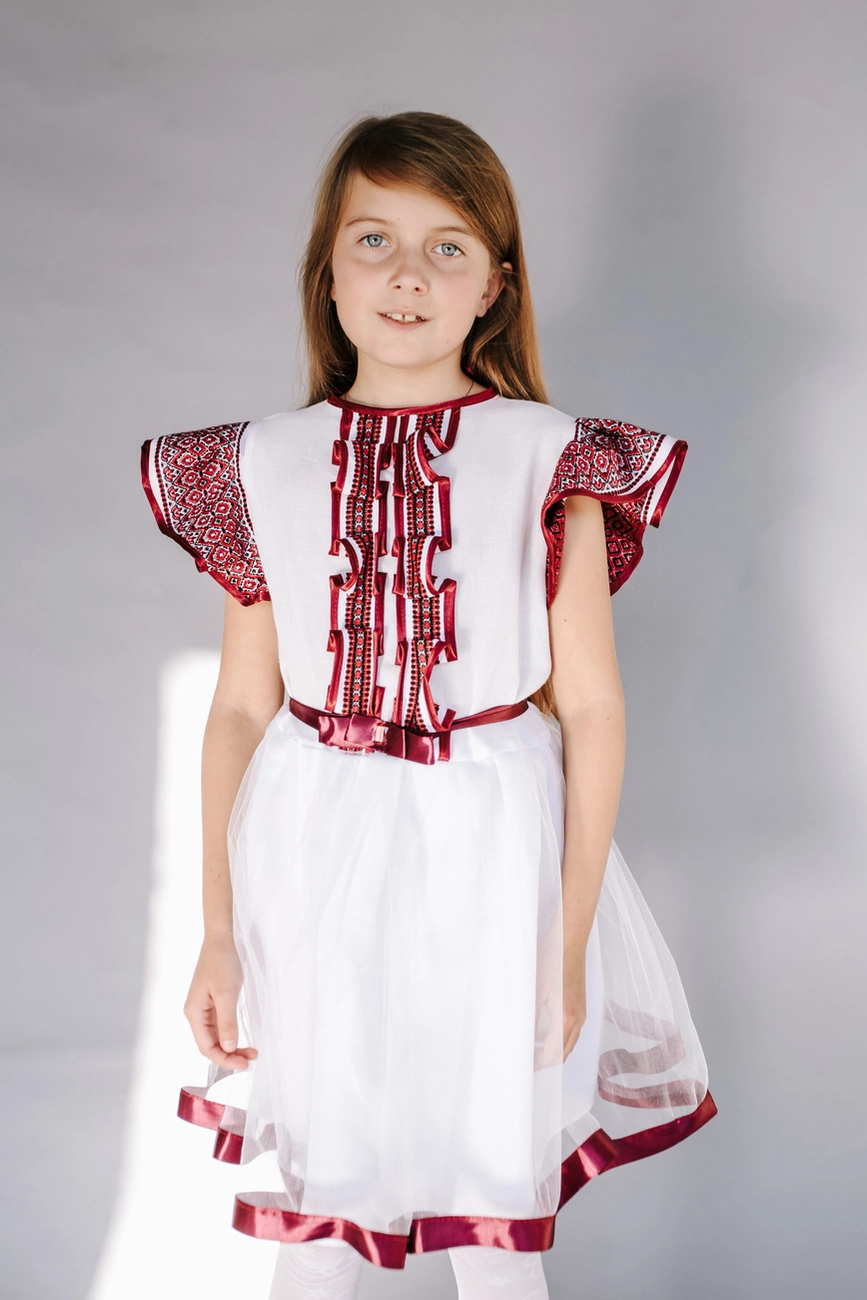 Дитяча вишита сукня бордового кольору з пояском від гуртівні Leosouvenir створить неперевершений вигляд Вашої дитини.