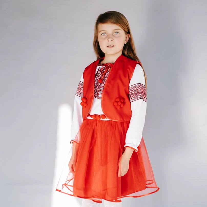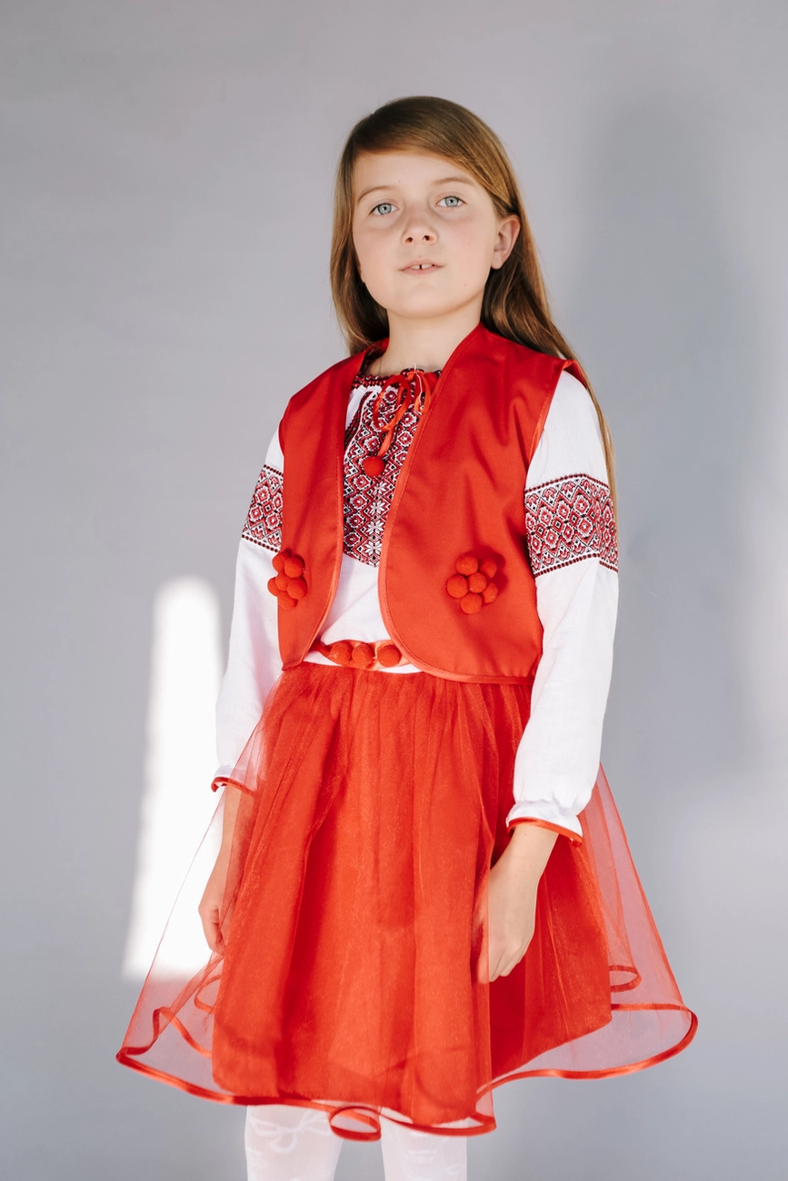 Дитяча вишита сукня червоного кольору з пояском від гуртівні Leosouvenir створить неперевершений вигляд Вашої дитини.