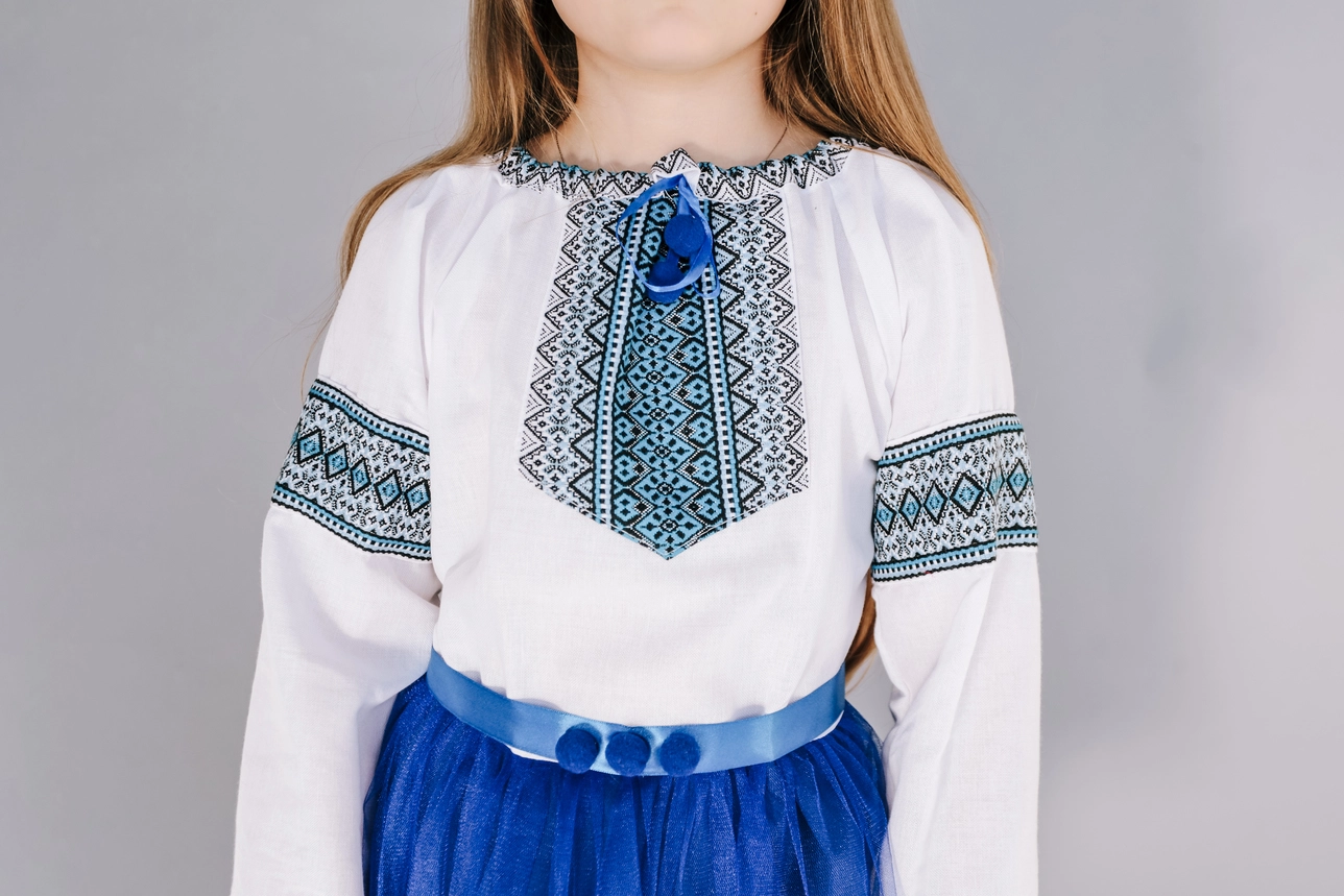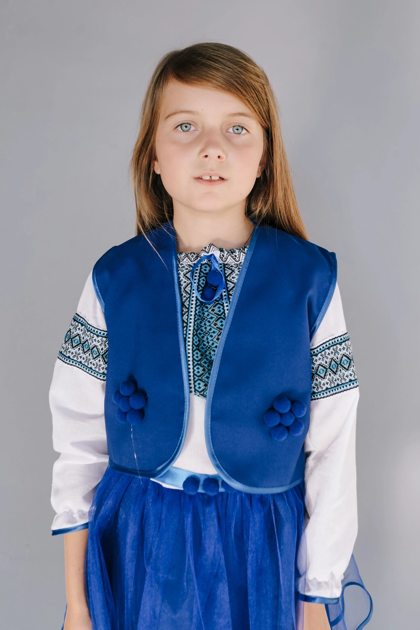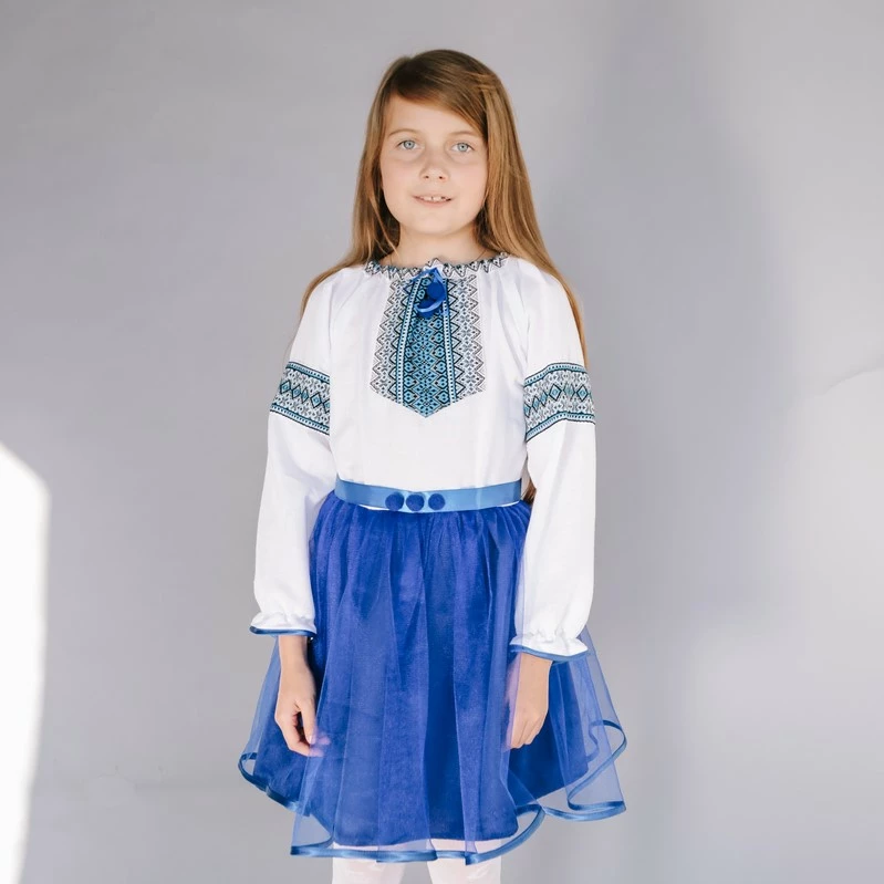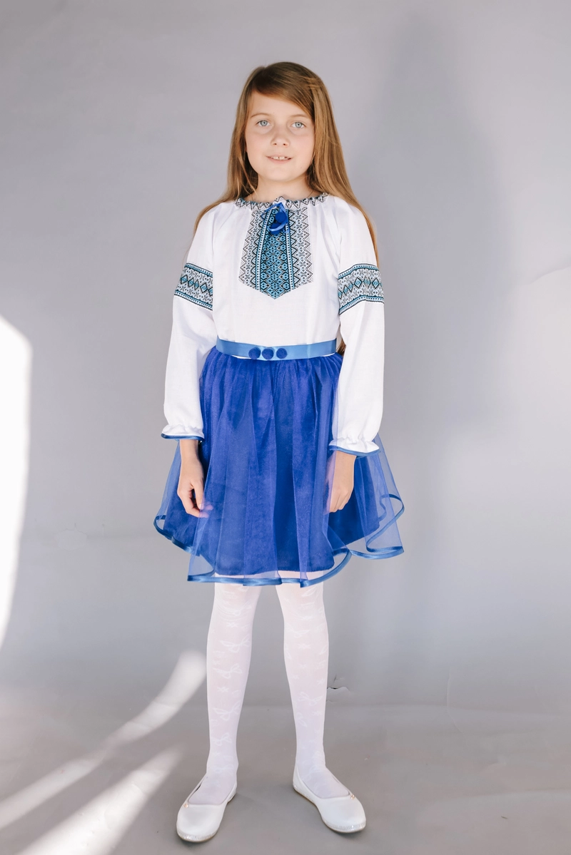 Дитяча вишита сукня синього кольору з пояском від гуртівні Leosouvenir створить неперевершений вигляд Вашої дитини.