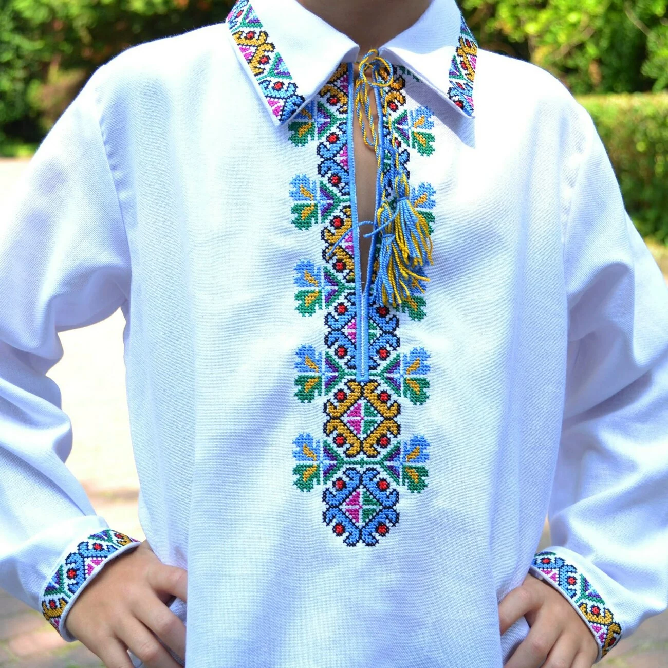 В серці вишиванки – багатий кольоровий орнамент, виконаний нитками яскравих кольорів. Вдале поєднання кольорів створює унікальний вигляд, завдяки чому вишиванка від гуртівні Leosouvenir має багатий та святковий вигляд.