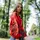 Жіноча стильна вишиванка виконана чорними нитками, які чудово контрастують із делікатною яскраво-червоною тканиною, від гуртівні Leosouvenir має багатий та святковий вигляд.
