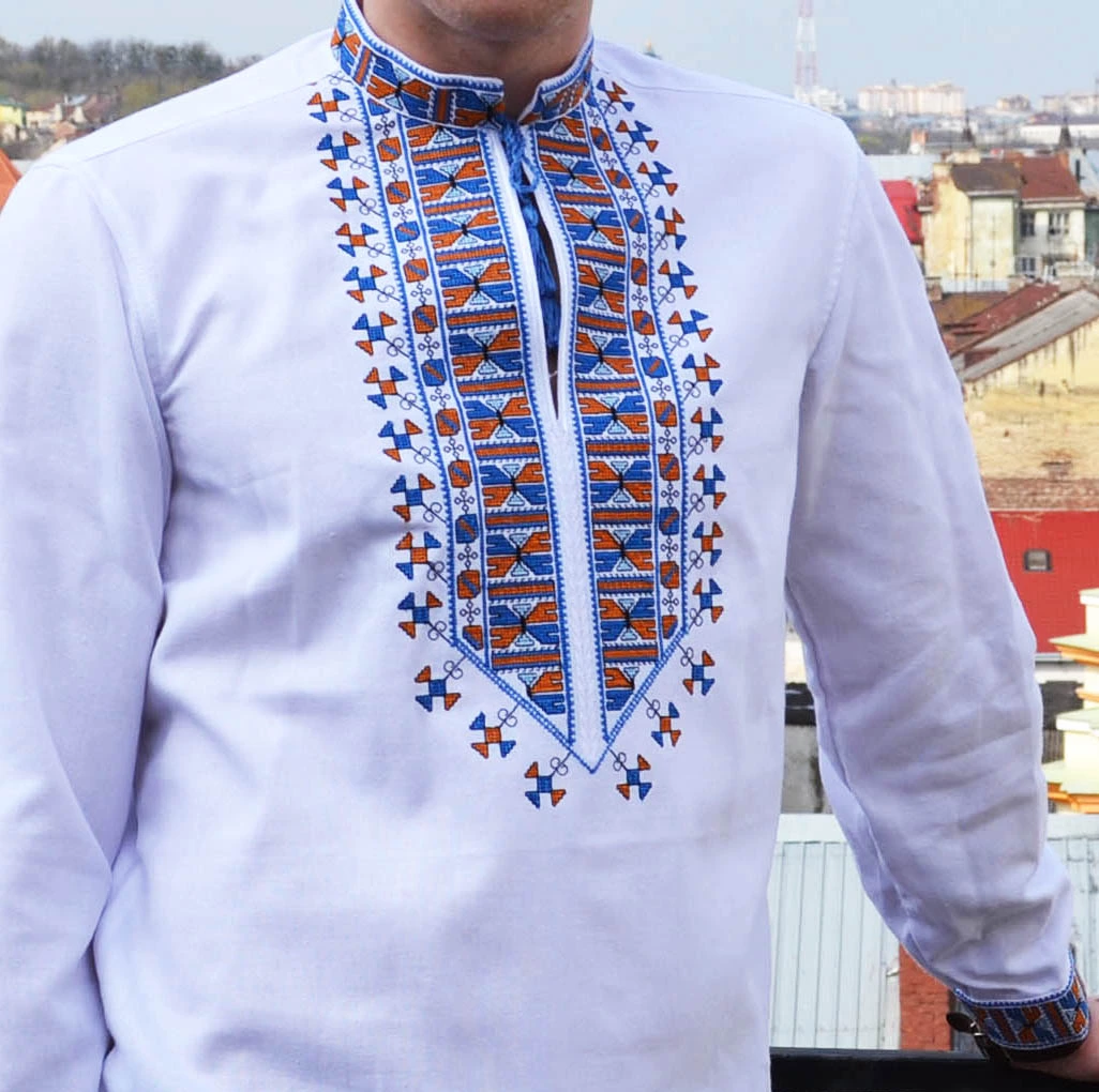 В серці вишиванки – багатий орнамент, виконаний нитками теплих кольорів. Яскраве поєднання кольорів створює унікальний вигляд, завдяки чому вишиванка від гуртівні Leosouvenir має багатий та святковий вигляд.