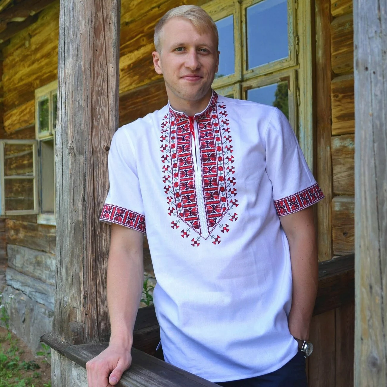 В серці вишиванки – багатий орнамент, виконаний нитками червоних кольорів. Яскраве поєднання кольорів створює унікальний вигляд, завдяки чому вишиванка від гуртівні Leosouvenir має багатий та святковий вигляд.