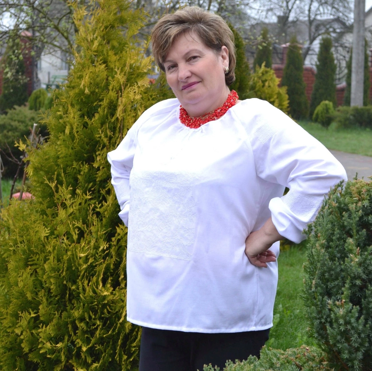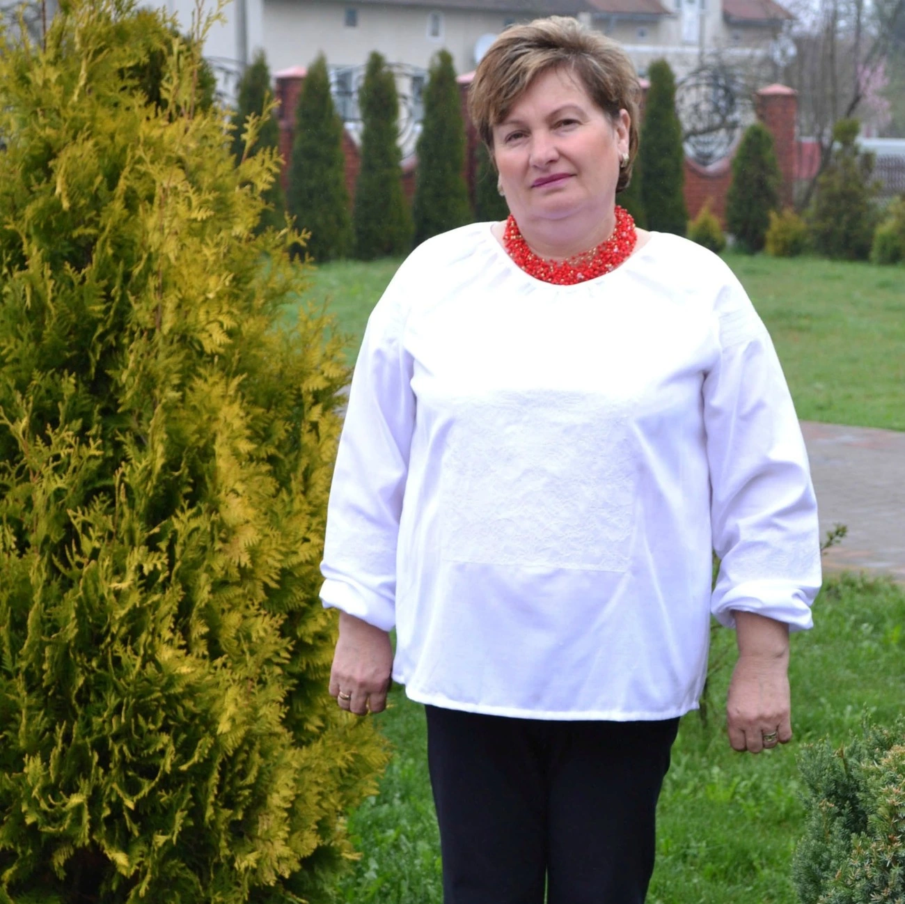 Жіноча вишиванка вишита білими нитками на білому делікатному полотні від гуртівні Leosouvenir має багатий та святковий вигляд. Витончений візерунок, що прикрашає вишиванку, зробить Вас вишуканою Українкою.