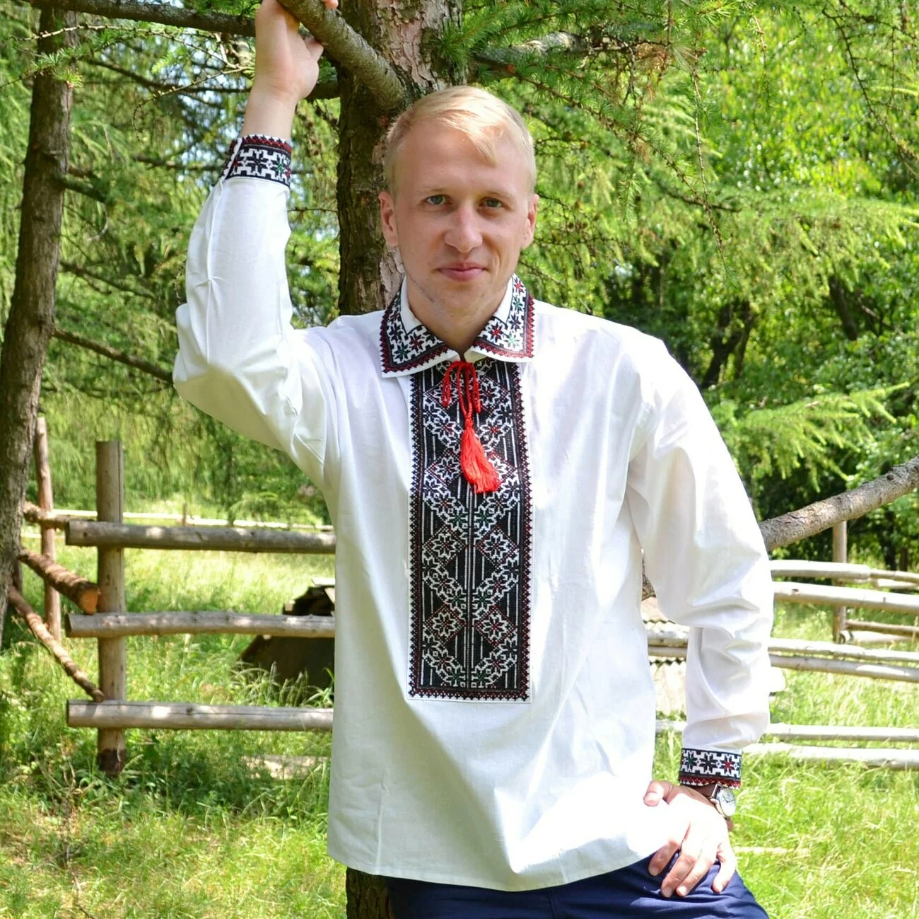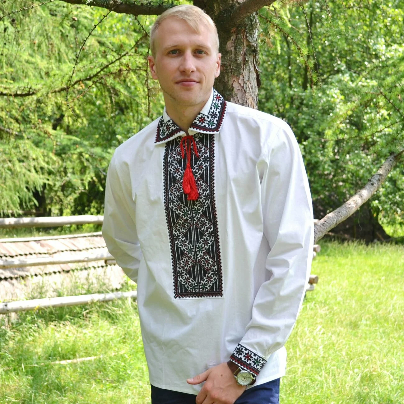 Чоловіча вишиванка, виконана нитками традиційних кольорів, які чудово контрастують із натуральною тканиною, від гуртівні Leosouvenir має багатий та святковий вигляд.