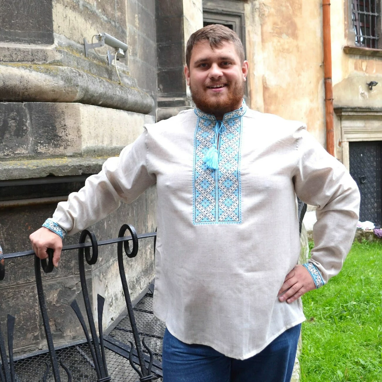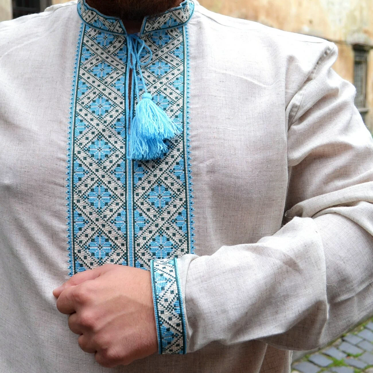 Чоловіча вишита сорочка з кольоровим оригінальним орнаментом від гуртівні Leosouvenir має багатий та святковий вигляд.