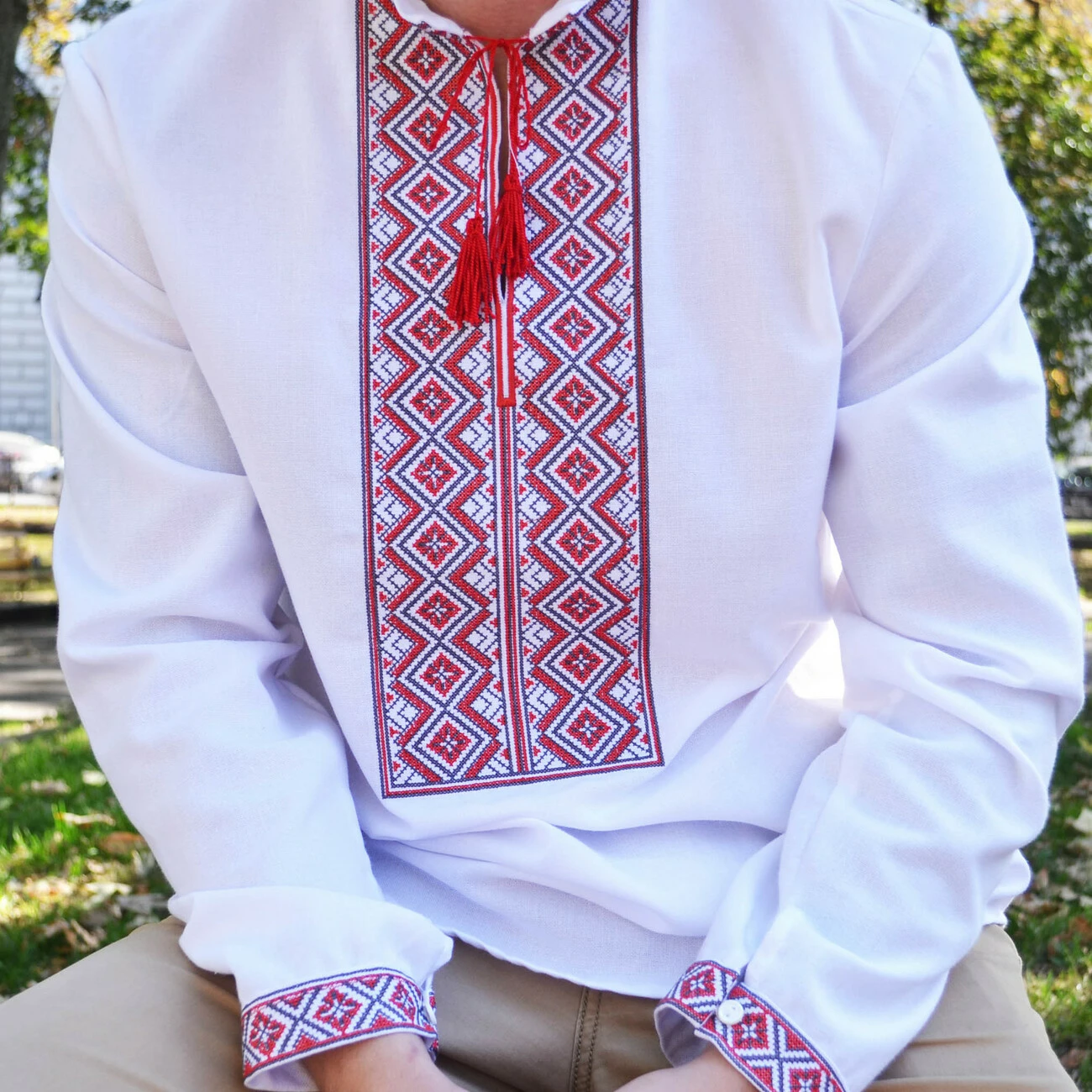 В серці вишиванки – делікатний орнамент, виконаний нитками традиційних кольорів . Яскраве поєднання кольорів створює унікальний вигляд, завдяки чому вишиванка від гуртівні Leosouvenir має багатий та святковий вигляд.