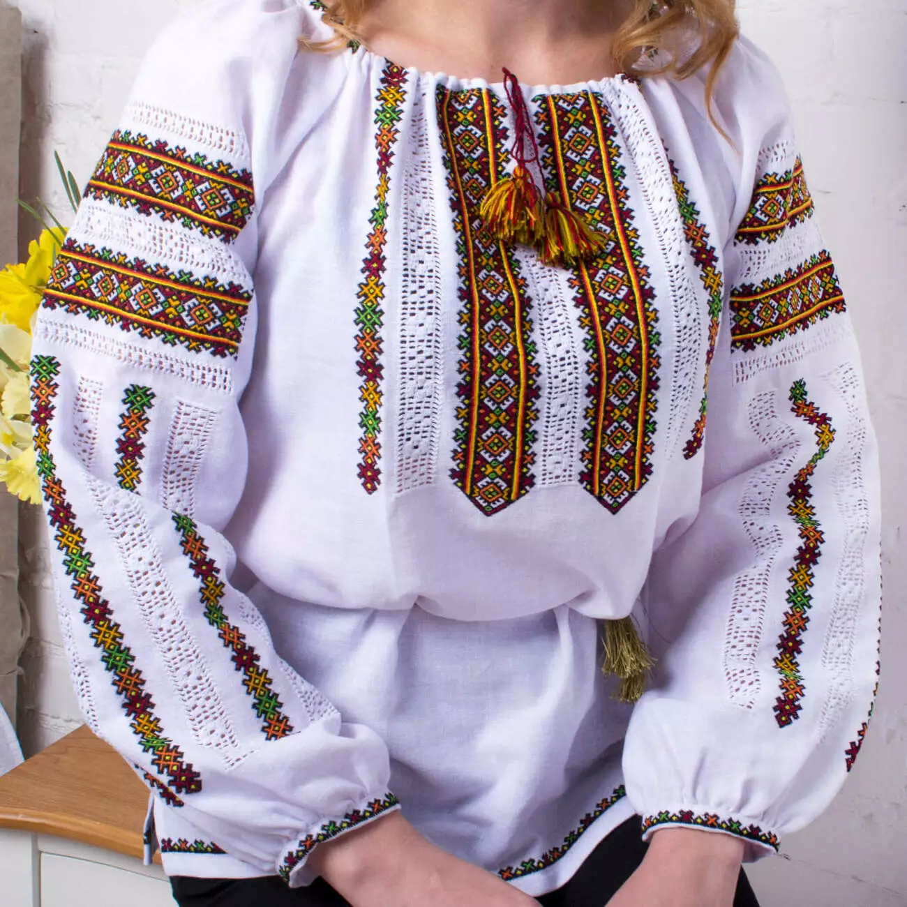 В серці вишиванки Мелодія літа – багатий орнамент прикрашений мережкою. Стримане поєднання кольорів та водночас оригінальний виріз на шиї із китичками створюють унікальний вигляд, завдяки чому вишиванка від гуртівні Leosouvenir має багатий та святковий вигляд.