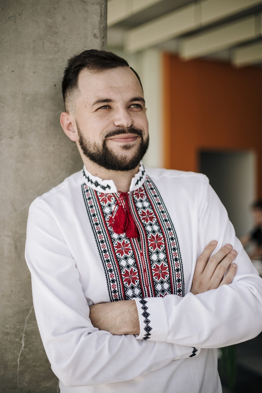 Чоловіча вишита сорочка з простим оригінальним орнаментом від гуртівні Leosouvenir має багатий та святковий вигляд.