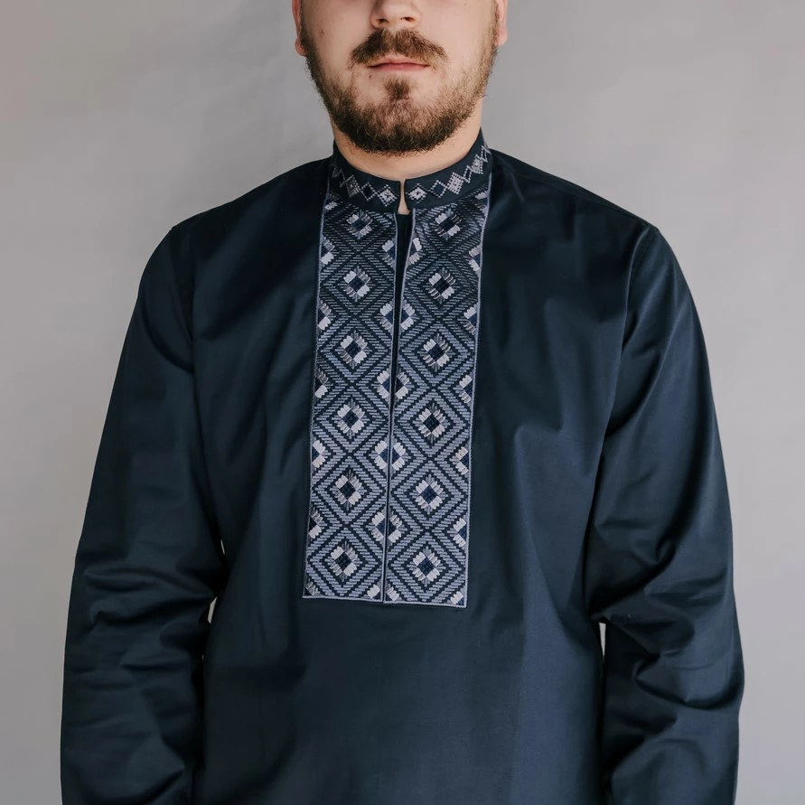 Чоловіча вишита сорочка з простим оригінальним орнаментом від гуртівні Leosouvenir має багатий та святковий вигляд.