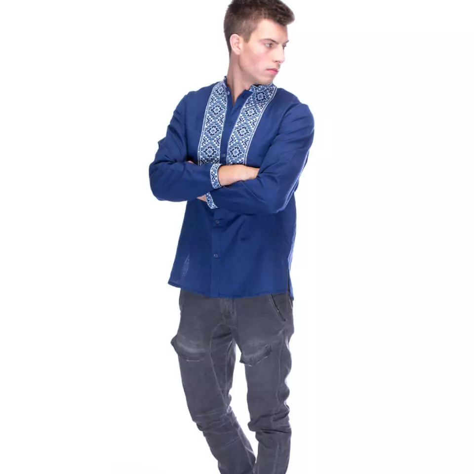 Чоловіча вишита сорочка з оригінальним орнаментом вишитим нитками світлих кольорів від гуртівні Leosouvenir має багатий та святковий вигляд.