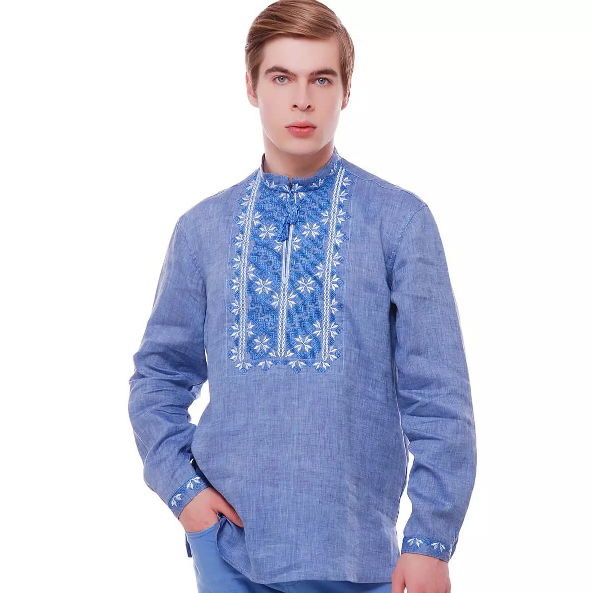 В серці вишиванки – багатий орнамент, виконаний нитками синіми кольорів. Вдале поєднання кольорів створює унікальний вигляд, завдяки чому вишиванка від гуртівні Leosouvenir має багатий та святковий вигляд.