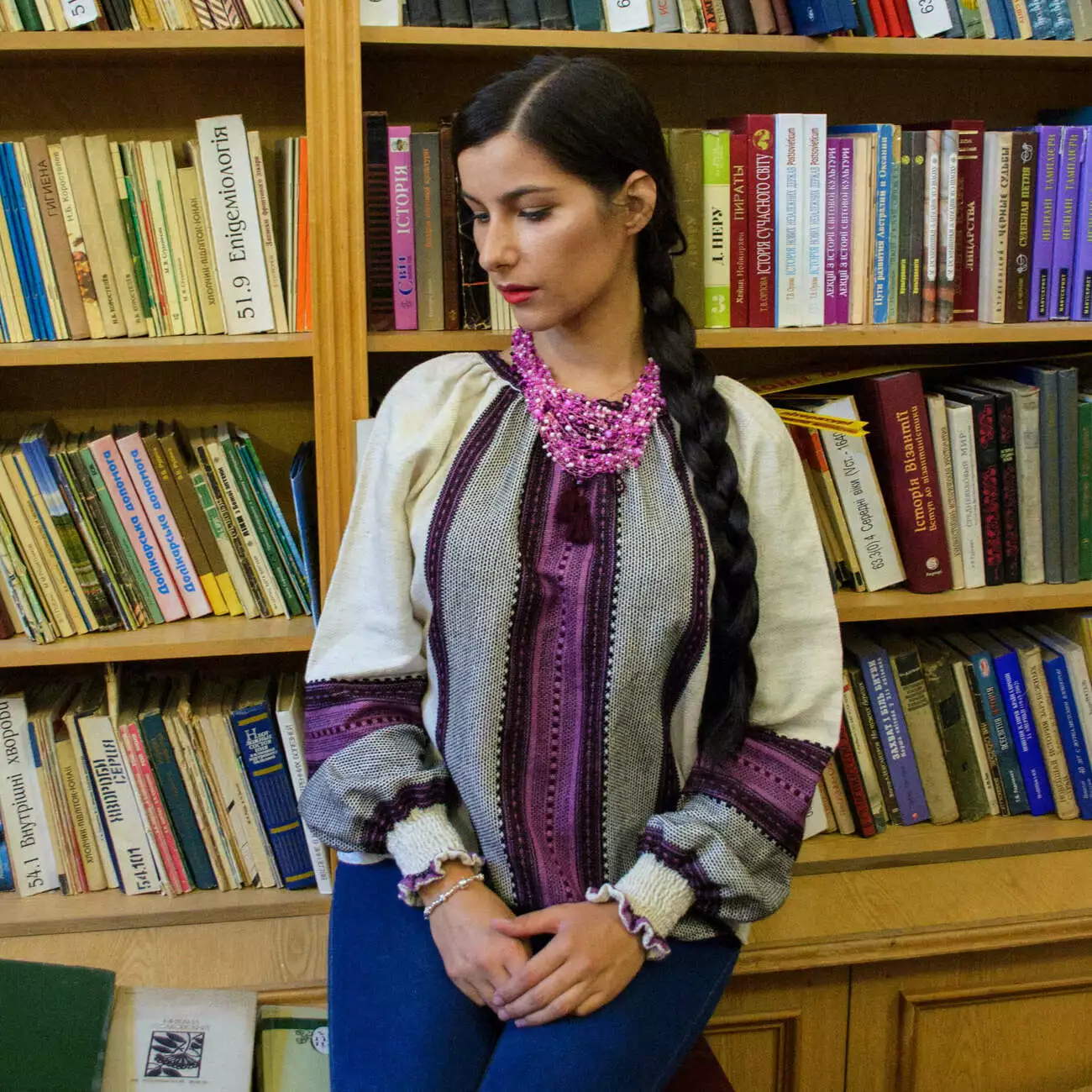 Жіноча вишита сорочка, виконана на сірому тканому полотні темними нитками, від гуртівні Leosouvenir ідеально підкреслить Ваш неперевершений стиль і смак.