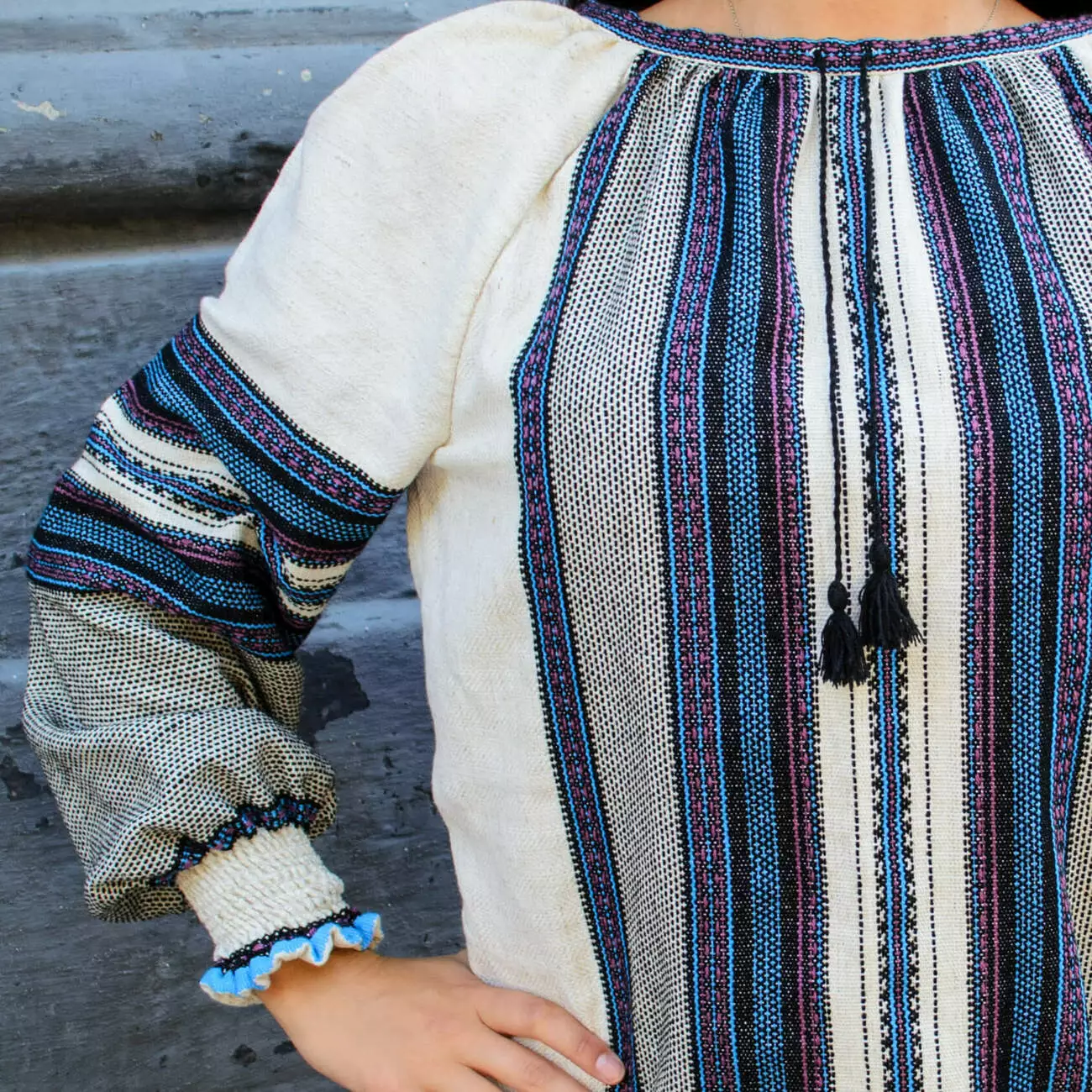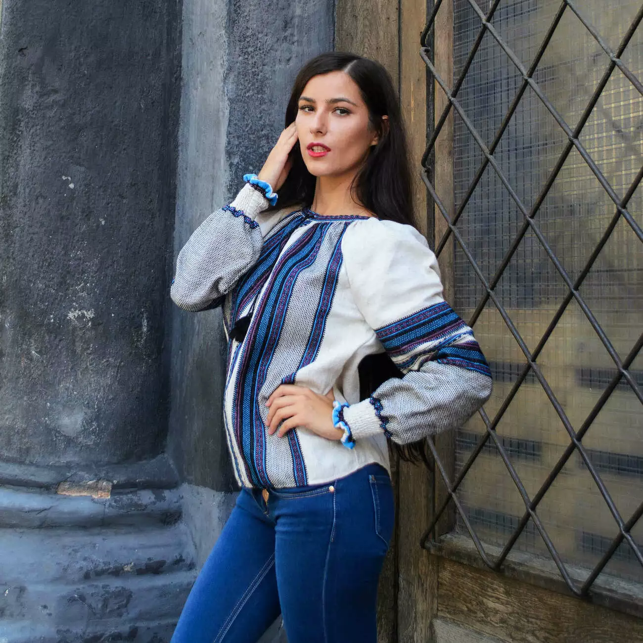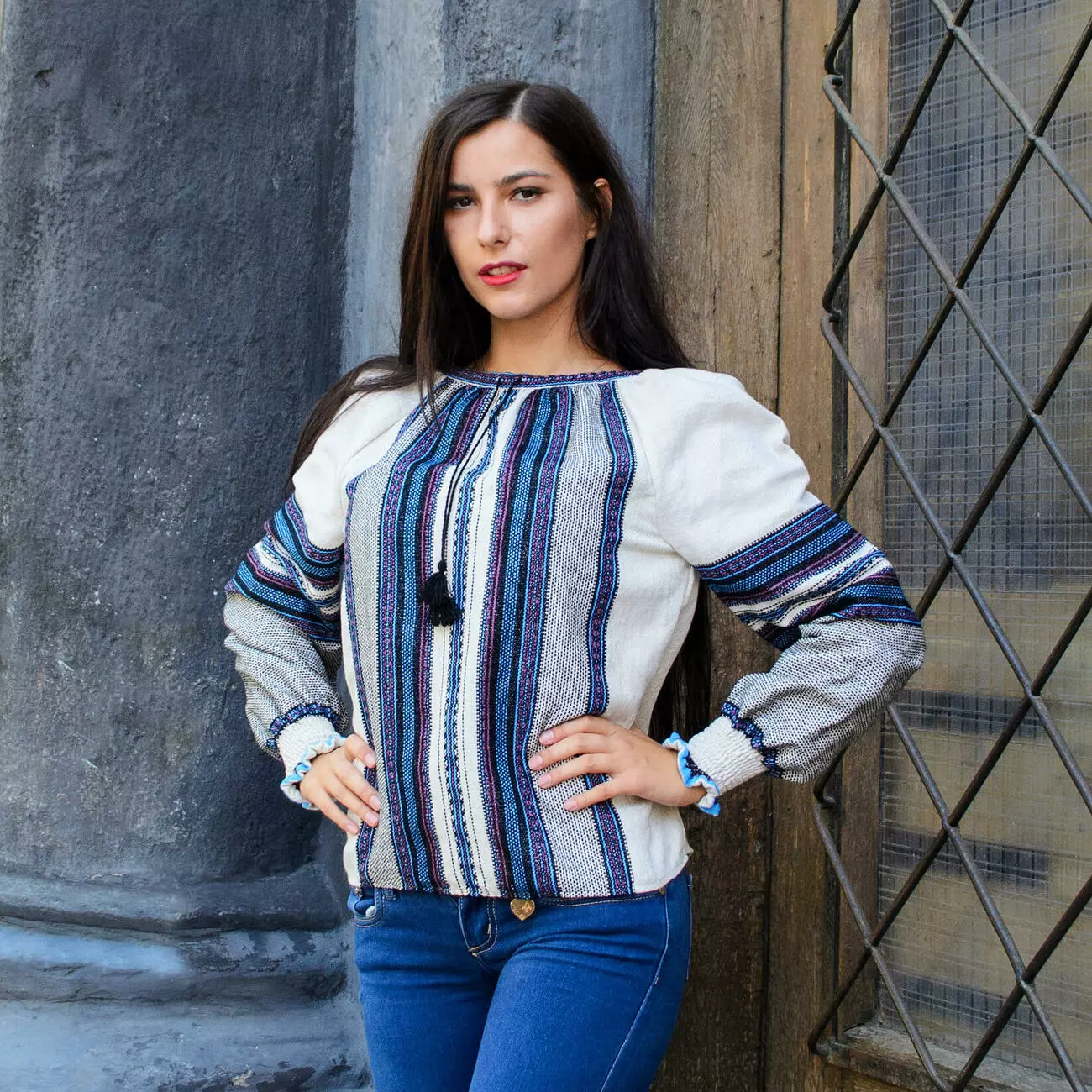 Жіноча вишита сорочка, виконана на сірому тканому полотні темними нитками, від гуртівні Leosouvenir ідеально підкреслить Ваш неперевершений стиль і смак.