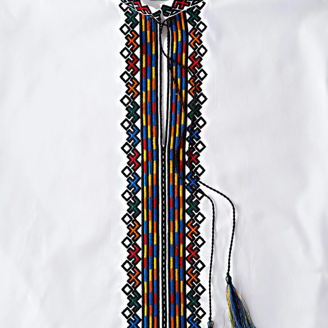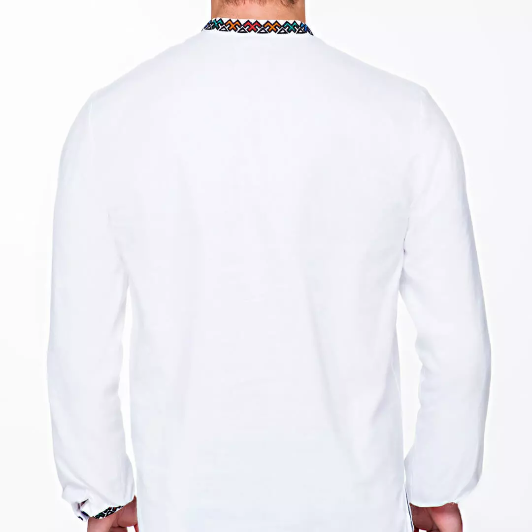 Чоловіча вишиванка виконана яскравими нитками, які чудово контрастують із натуральною тканиною від гуртівні Leosouvenir має багатий та святковий вигляд.