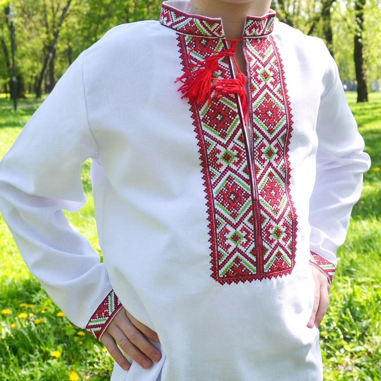 В серці вишиванки – багатий кольоровий орнамент, виконаний нитками яскравих кольорів. Вдале поєднання кольорів створює унікальний вигляд, завдяки чому вишиванка від гуртівні Leosouvenir має багатий та святковий вигляд.