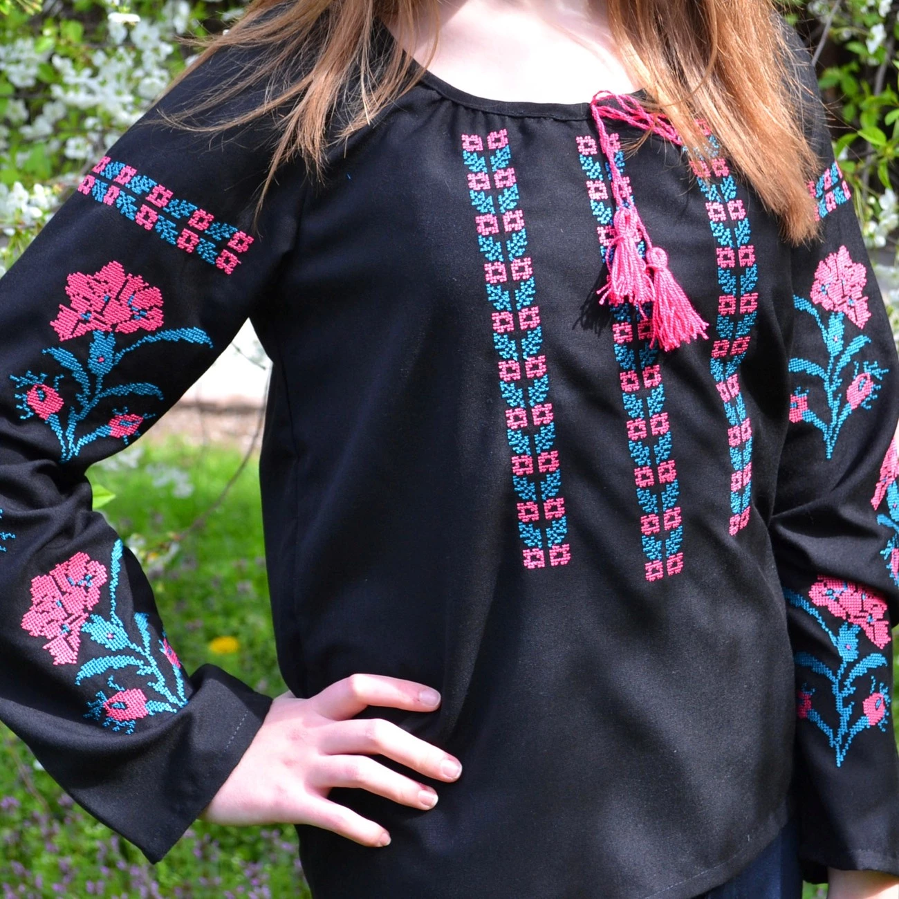 Тканина: чорне домоткане полотно.