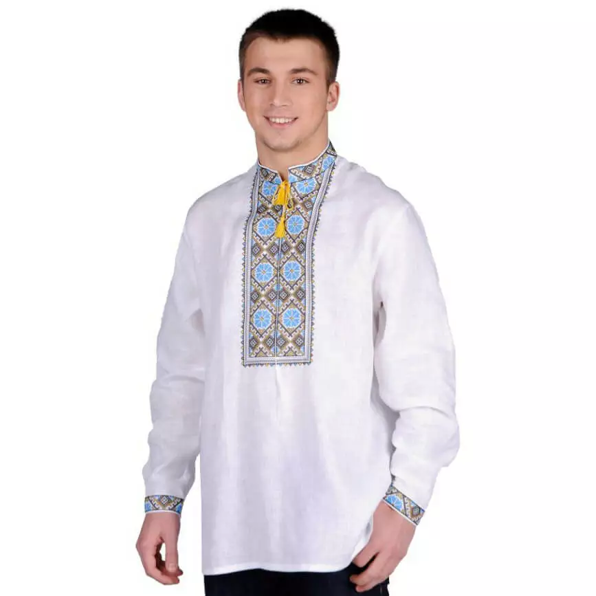 Чоловіча вишита сорочка з оригінальним орнаментом вишитим нитками яскравих кольорів від гуртівні Leosouvenir має багатий та святковий вигляд.